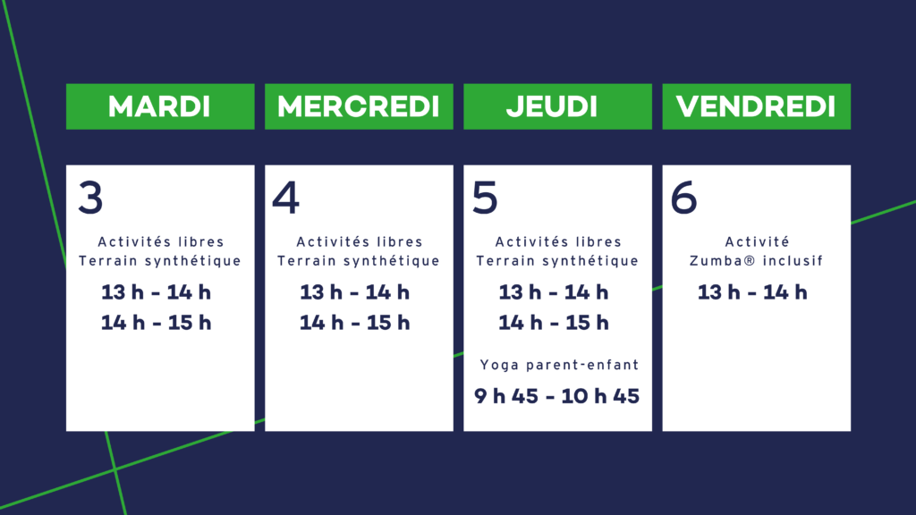 Que ce soit pour bouger, découvrir une nouvelle activité ou simplement vous amuser, plusieurs options sont offertes tout au long de la semaine pour les jeunes.